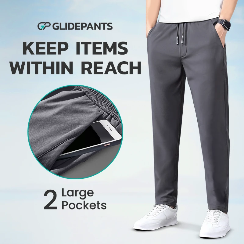 GlidePants feature 2 large slanted front pockets that are easy to reach, accommodating all your personal items, and an adjustable drawcord for a fit that adapts to your body!